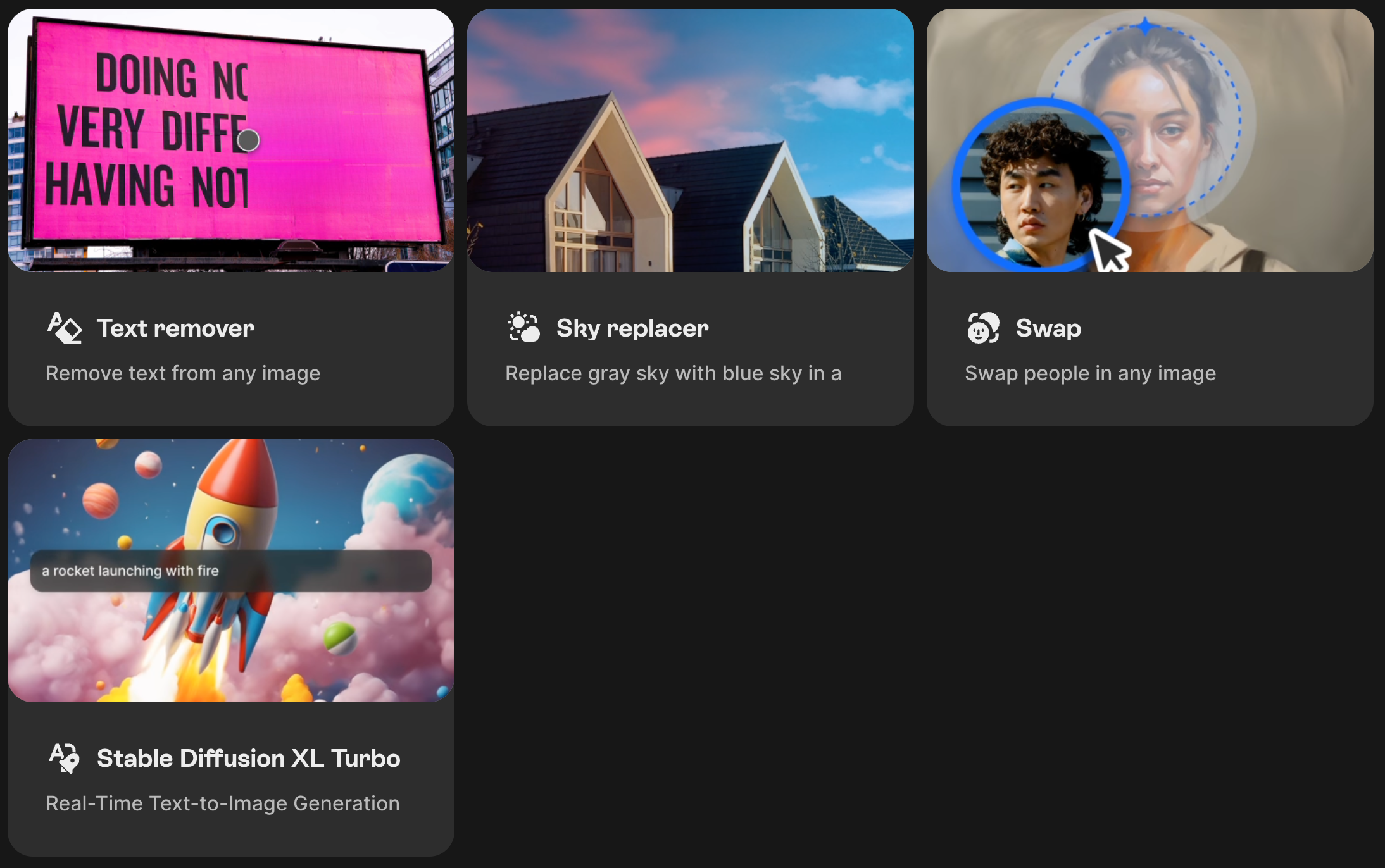 - 배경 제거, 특정 사물 제거등 사진 정리, 이미지 업스케일러, 웹편집기, 텍스트 리무버, 재조명등의 기능을 제공함.