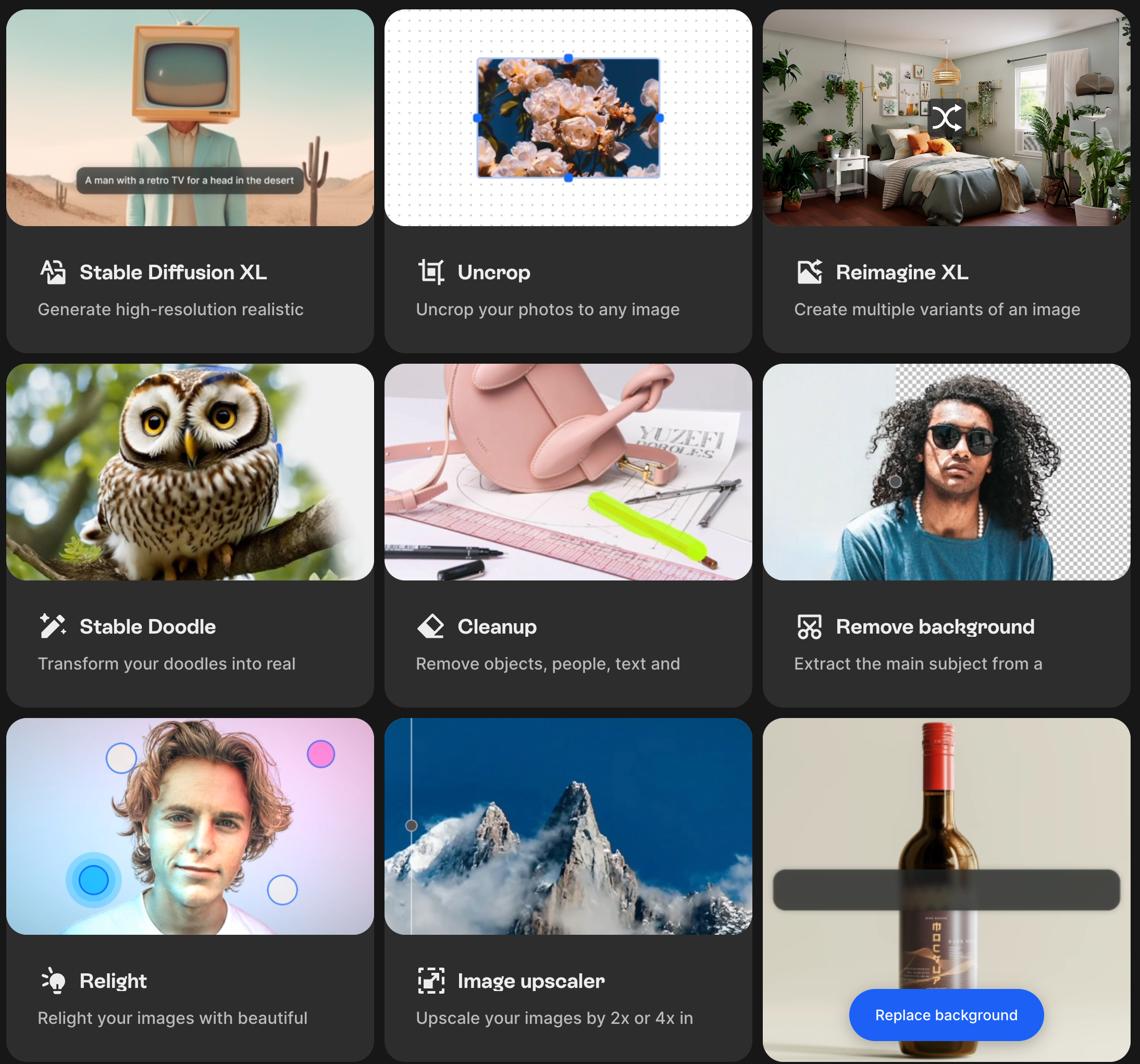 Remove background, cleanup pictures, upscaling, Stable diffusion and more…
