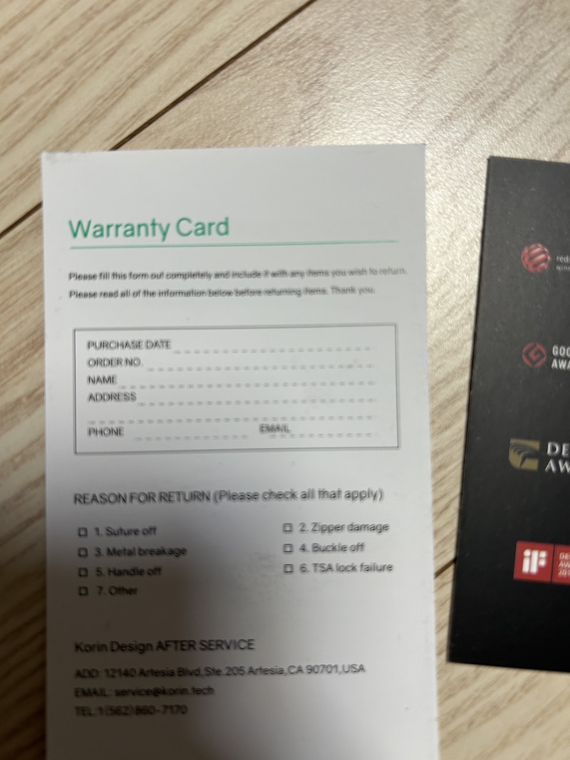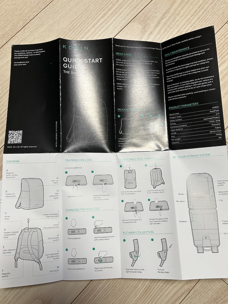 가방안에 간단한 설명서와 워런티, 레드닷 디자인 수상 태그등이 들어 있네요.