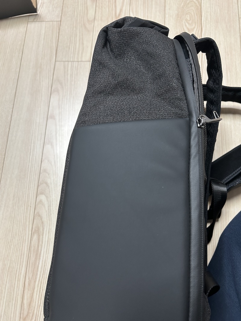 2. 가방의 굴곡이 약간 하드한 재질인데 쓰다보니 윗 부분이 약간 구김이 생기네요.