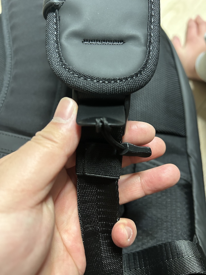 3. 가방 스트랩의 길이 조절하는 원터치 스냅 버클이 자주 풀렸는데, 나중에 보니 두 스트랩을 잡아주는 부분을 아래로 내리니 잘 안풀리네요. 설명이 좀 어려운데 이건 제가 잘 몰라서 그랬던듯.