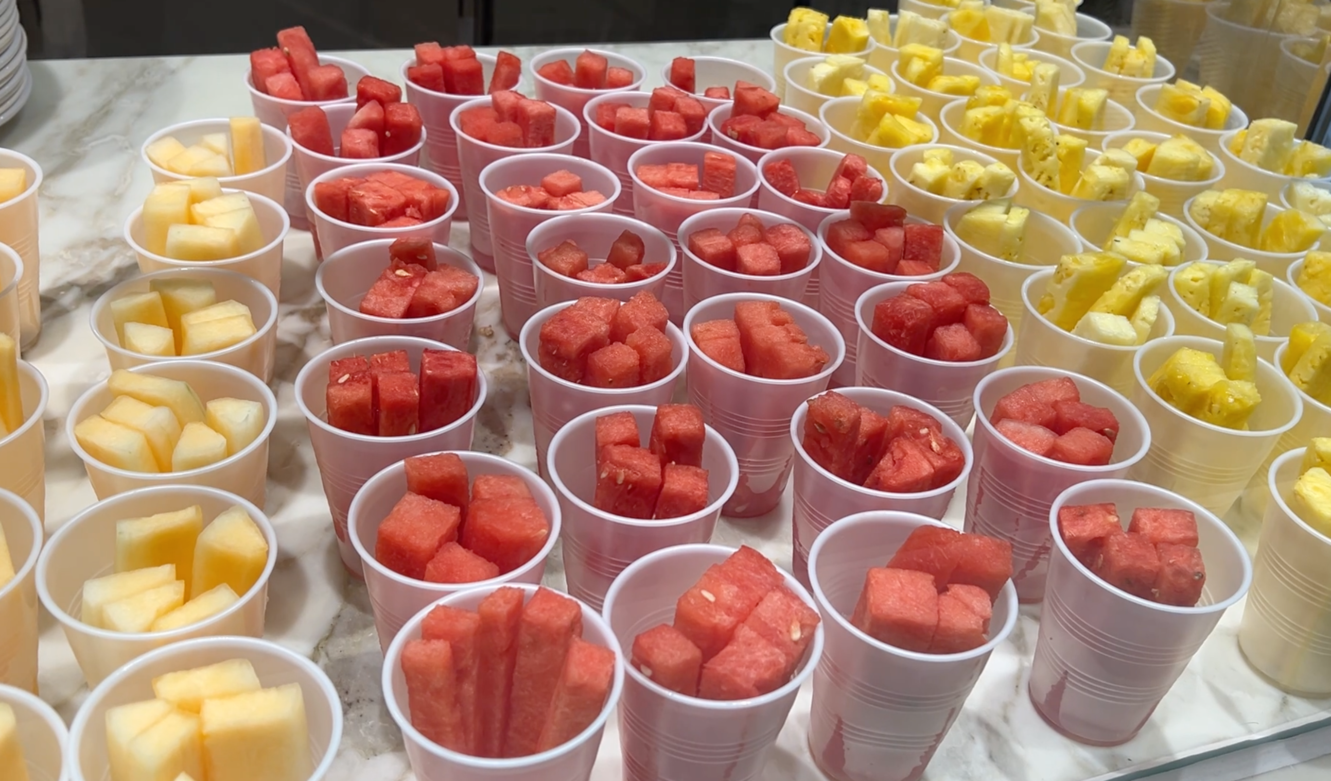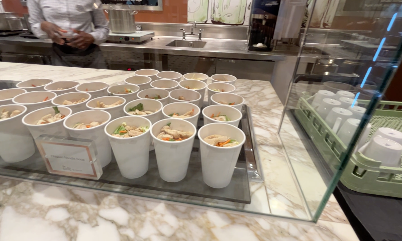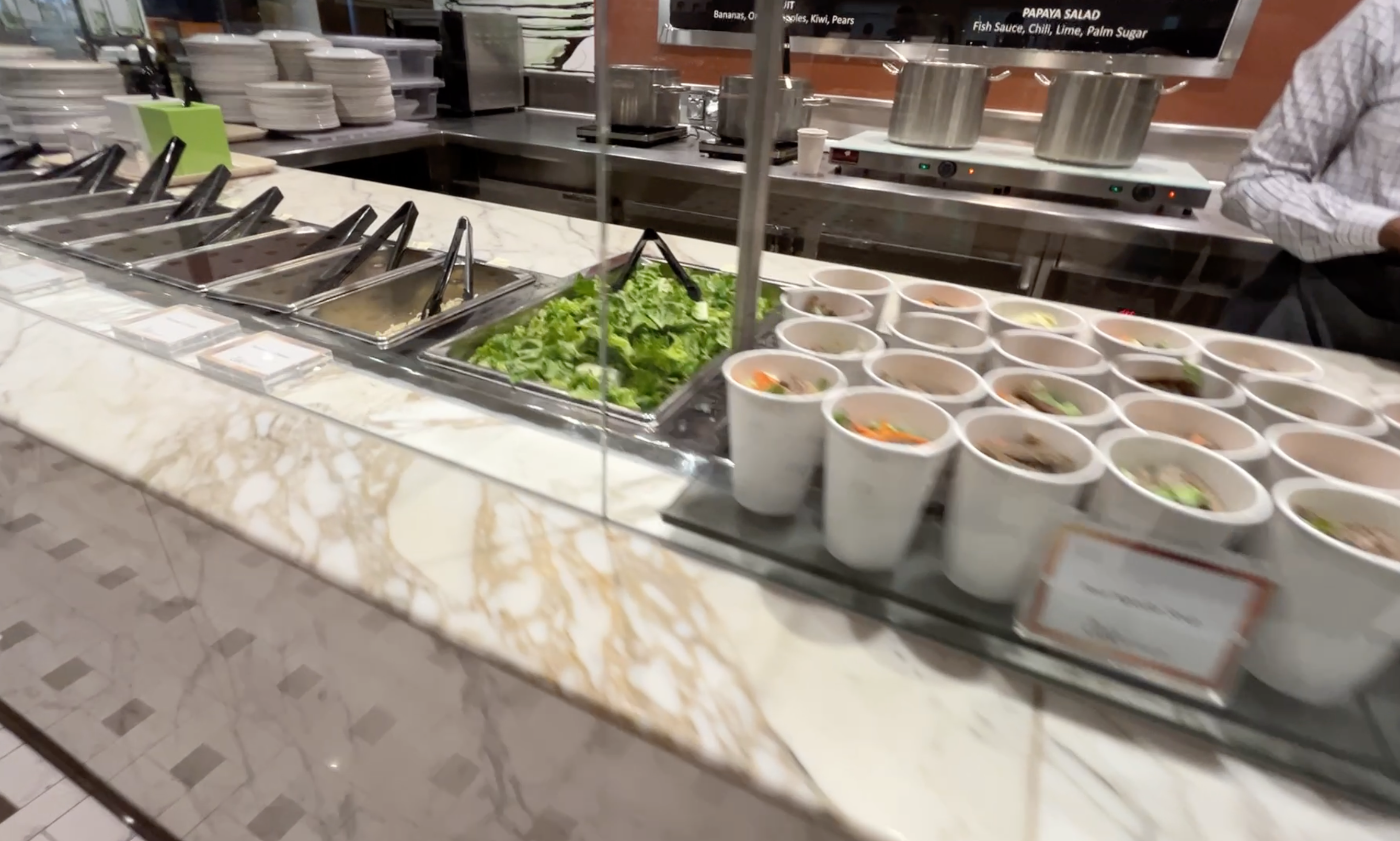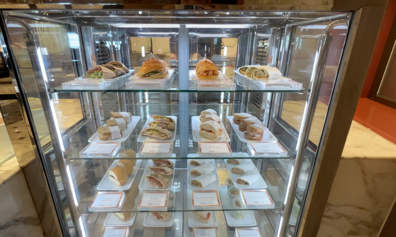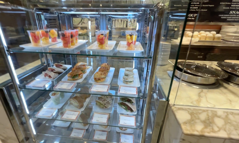 주로 샌드위치(콜드,핫) 종류, 과일, 누들, 음료(커피, 쥬스, 물)등을 제공해요