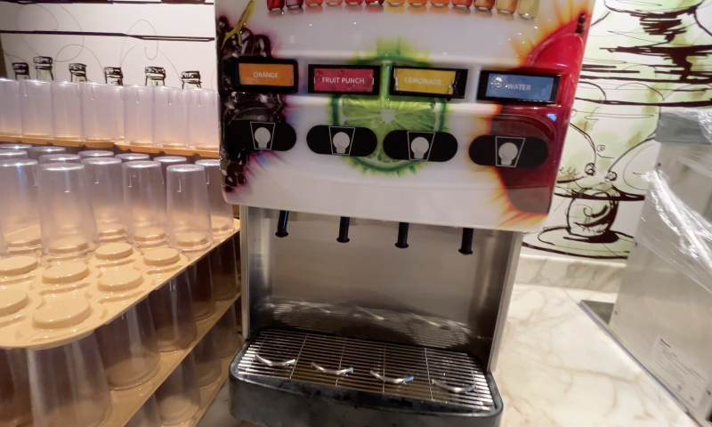 커피, 주스 음료, 물, 샌드위치, 페스츄리, 과일등을 제공하는데 늦은 밤까지 운영해요