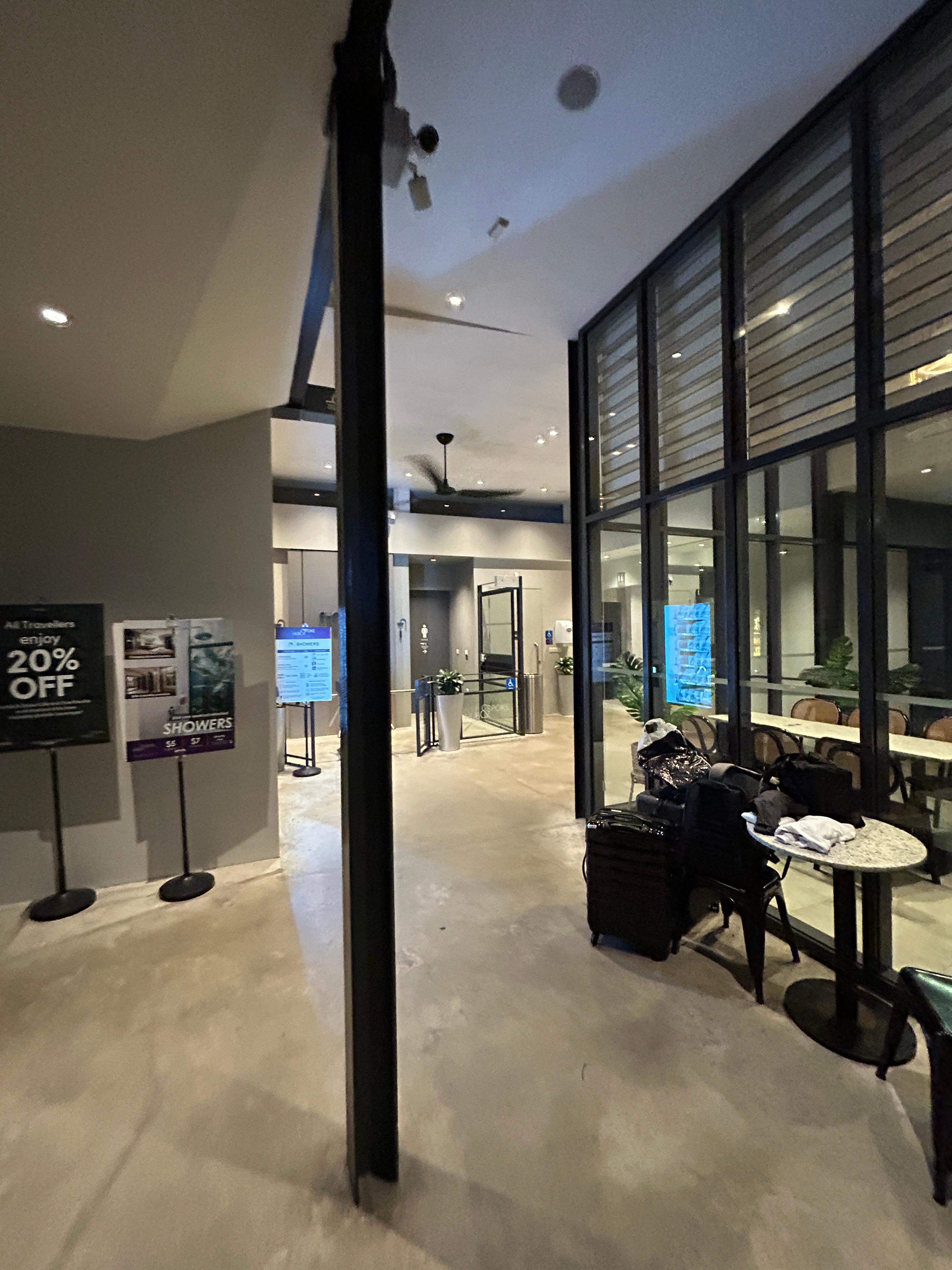 싱가포르 창이 공항 허브 앤 스포크 가든 라운지에서 샤워 및 식사(공공 구역)
