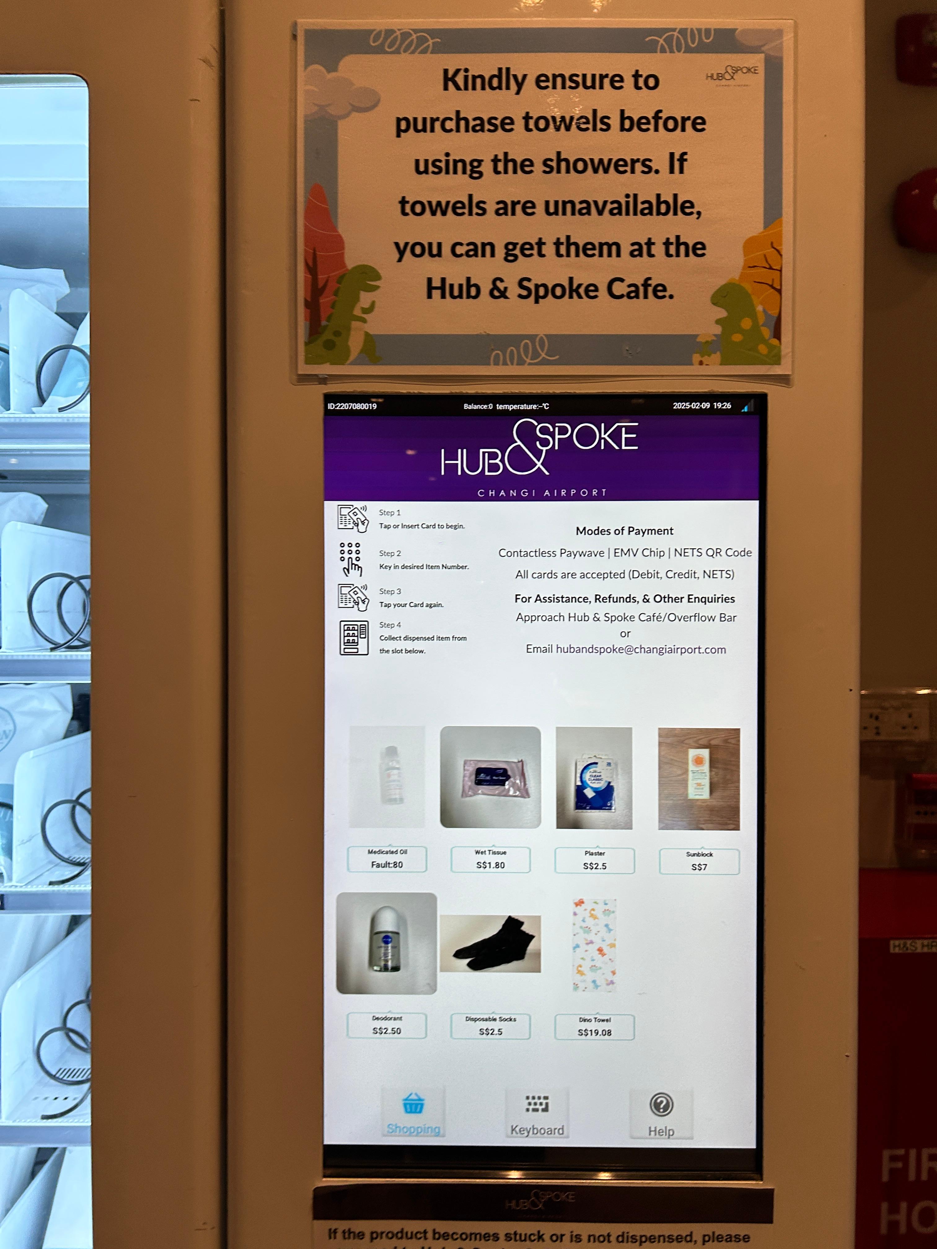 아래처럼 입구 자판기에서 구매하셔도 됩니다. (타올은 4.5싱달러예요)